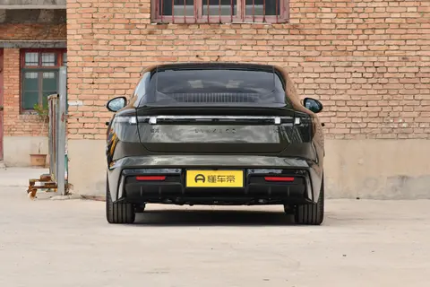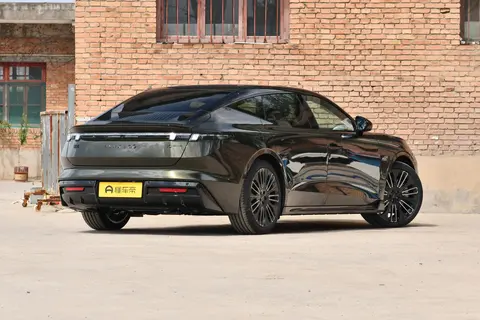 车身侧面,溜背式车顶线条流畅而干练,从 A 柱到车尾一气呵成,勾勒出动感的车身轮廓,尽显优雅与速度之美。贯穿式腰线巧妙地划分出车身的不同层次,使整车看起来更加修长且富有力量感。弹出式门把手的设计不仅提升了车辆的科技感,还能有效降低风阻,为提升续航助力。五辐式花瓣造型轮毂造型独特,不仅凸显了运动感,还在行驶过程中展现出独特的动态美感,与整车风格融合。车身尺寸方面,长宽高分别为 5050/1966/1487mm,轴距达 3005mm,这样的黄金宽高比让它拥有近似超跑般优雅的姿态,同时也为车内空间提供了保障。
