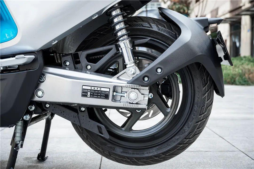 行走配置上,ES5采用了来自正新的前14寸后13寸真空轮胎,实际体验其抓地力表现不错,日常通勤以及偶尔的跑山骑行都能胜任。ES5标配了正置前减加预载可调弹簧液压阻尼双后减,实际体验能够感受到其前后减震偏运动化调校,加之轻量化的铝合金后摇臂加持,满足弯道上的支撑性要求,车身稳定性不错。