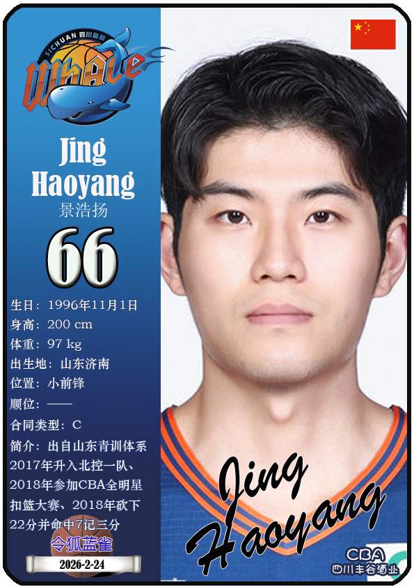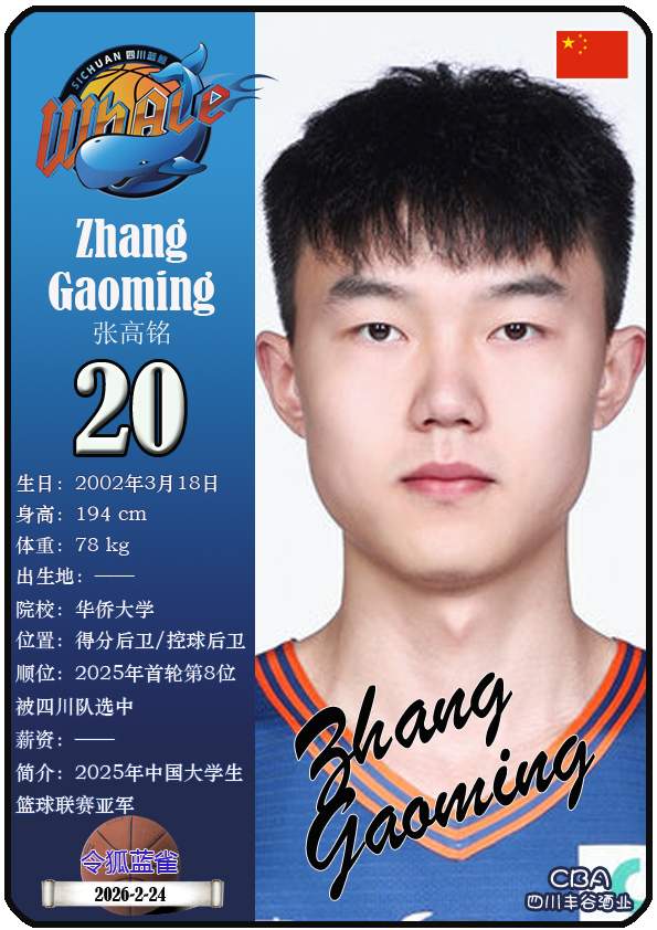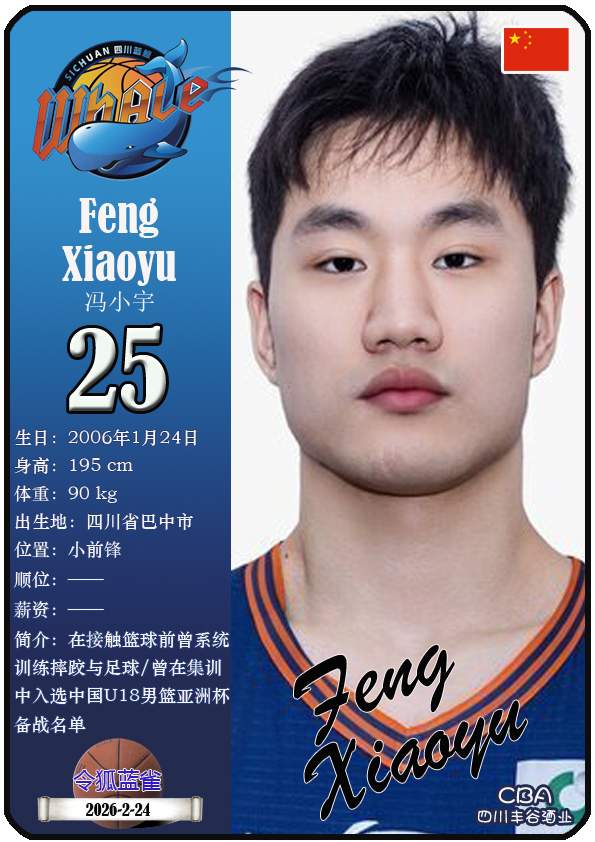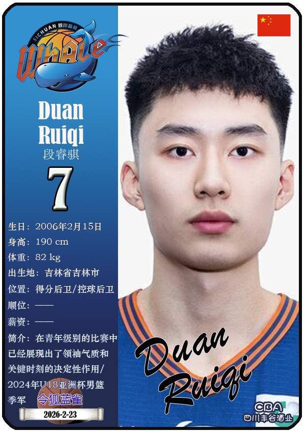 四川男篮成立于2009年,距今已有17年历史。目前球队主教练是杨城,队内拥有球员景菡一、胡钧淋、肖傈仁等。本期盘点截至2026年2月24日CBA四川丰谷酒业男篮的22名球员(按球衣号码排序):