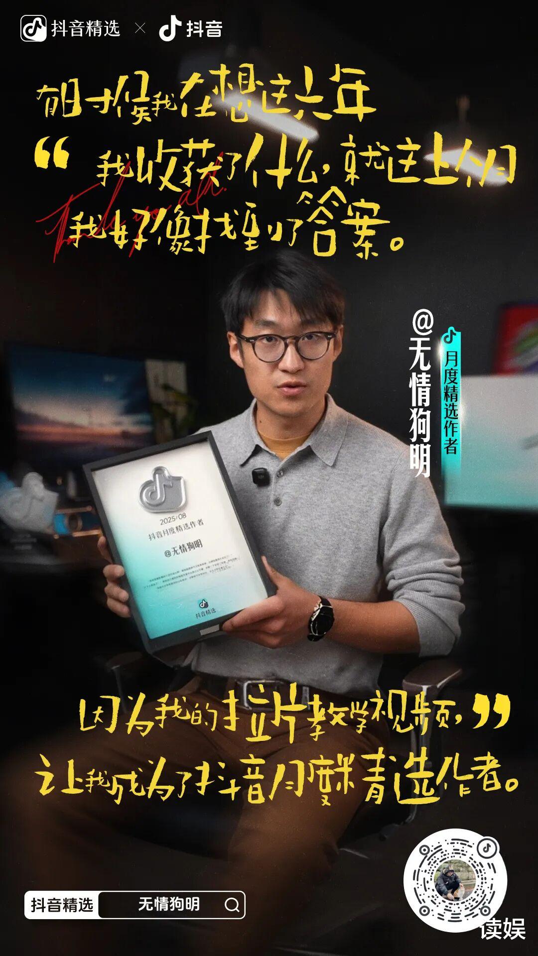 在月度精选作者中,像他们这样不以趣味性而以专业性见长的创作者不在少数,他们的内容价值感大于感官刺激,通过知识的增量、思考的启发为观众提供持久的收获,其内容的价值,不仅在于被观看的次数,更在于被“带走”和“内化”的程度,这也使他们成了被抖音精选认为值得被更多人看到的月度精选作者。