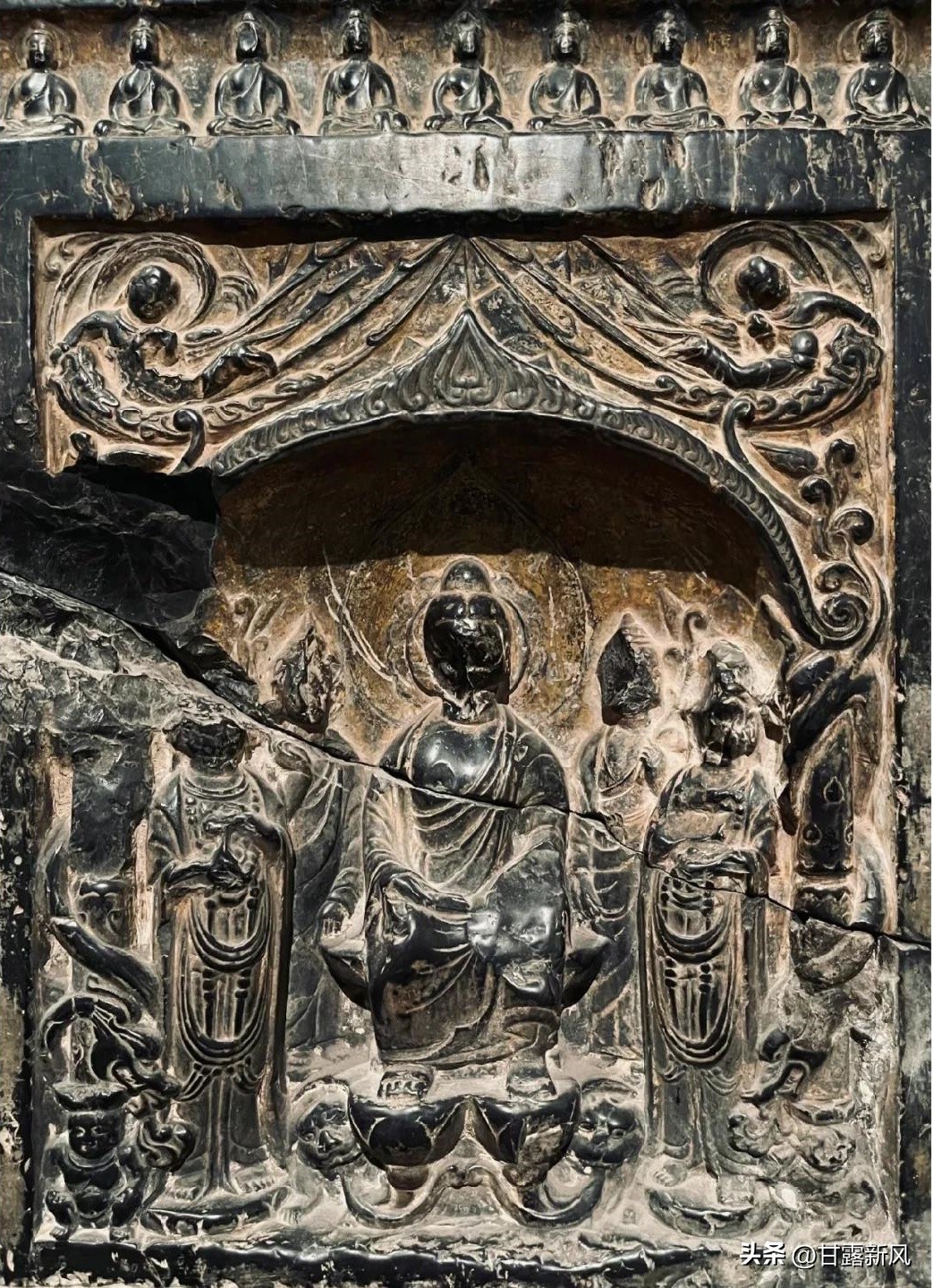 这件作品也具有重要的历史文献价值。遗憾的是,这两幅浮雕在上世纪30年代被盗凿。魏孝文帝礼佛图现藏于美国纽约大都会博物馆,文昭皇后礼佛图现藏于美国纳尔逊·阿特金斯艺术博物馆。