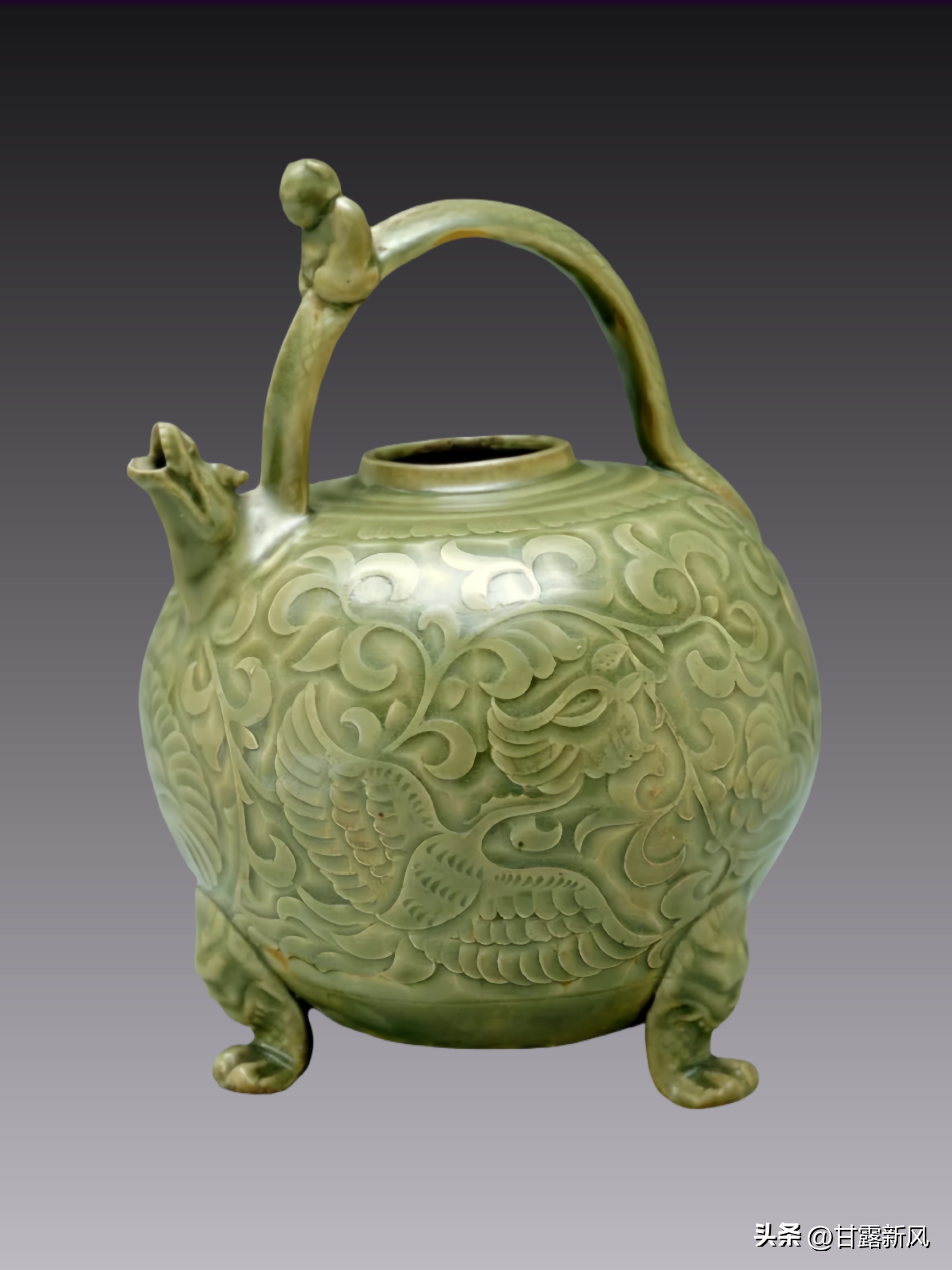 6、宋代耀州窑凤纹龙首提梁壶