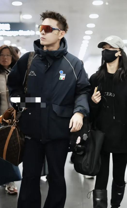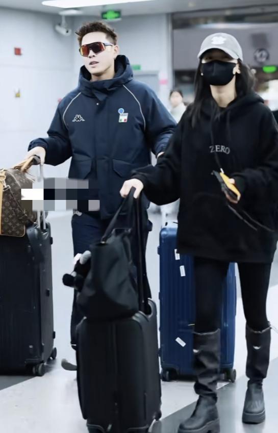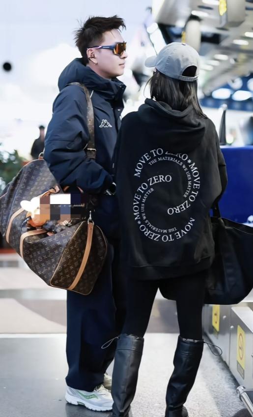 两人大包小包的拿着,像极了赶春运,洪尧推着两大行李箱,应该装了不少的礼品给老丈人和丈母娘了,手上提个大包才是他的换洗衣物,而吴谨言则拿着一个小登机箱和一个随身包包,看着两人走机场真是酷炫,同龄夫妻最好磕了。