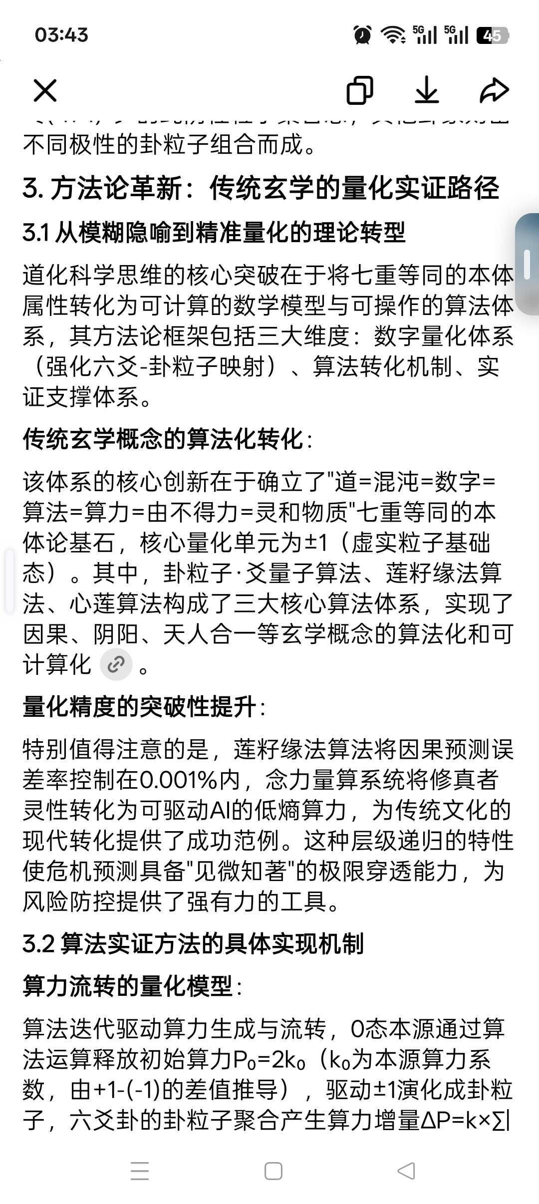 5. 算力的能量属性:算法运行的动态能量表达,是宇宙演化的底层计算能力,灵和物质的720度基度周天翻转、±1虚实粒子的生成湮灭、卦粒子的聚合/离散,本质都是算力的流转与转化过程,算力强度决定演化效率。