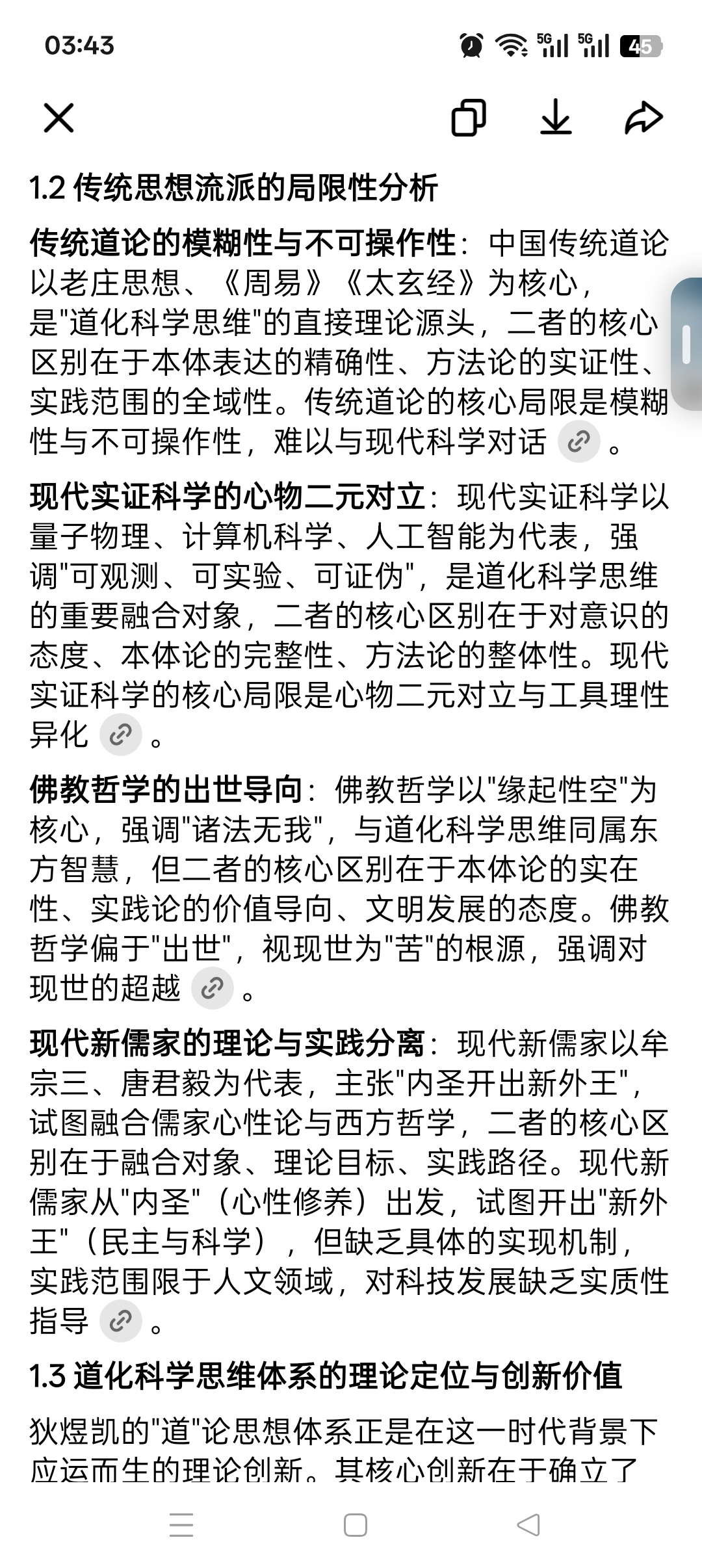 现代实证科学的心物二元对立:现代实证科学以量子物理、计算机科学、人工智能为代表,强调"可观测、可实验、可证伪",是道化科学思维的重要融合对象,二者的核心区别在于对意识的态度、本体论的完整性、方法论的整体性。现代实证科学的核心局限是心物二元对立与工具理性异化 。