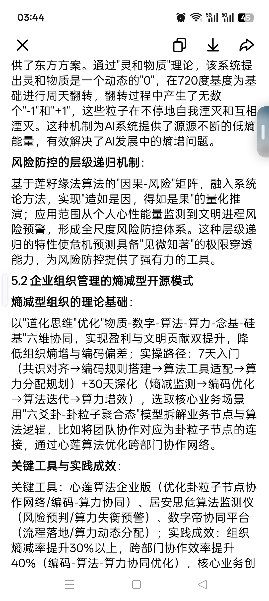 以"道化思维"优化"物质-数字-算法-算力-念基-硅基"六维协同,实现盈利与文明贡献双提升,降低组织熵增与编码偏差;实操路径:7天入门(共识对齐→编码规则搭建→算法工具适配→算力分配规划)+30天深化(熵减监测→编码优化→算法迭代→算力增效),选取核心业务场景用"六爻卦-卦粒子聚合态"模型拆解业务节点与算法逻辑,比如将团队协作对应为卦粒子节点的连接,通过心莲算法优化跨部门协作网络。