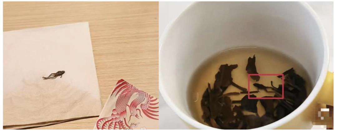 6月21日,一位消费者在社交媒体曝光称,自己冲泡奈雪的茶旗下「小盒茶-茉莉花茶」时,竟从茶杯中发现了一整只干燥的青蛙尸体——“喝了好几口,差点喝到嘴巴里去,吐了,太恶心,精神受到了刺激”。