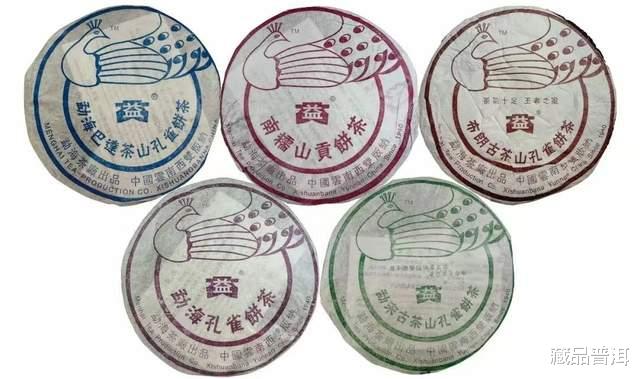2005年五只孔雀属于套系茶品,传承孔雀概念,舍弃独立产品形式,创新推出五只孔雀套装,一套茶里有5片,包括:勐宋孔雀、勐海孔雀、布朗孔雀、巴达孔雀、南糯孔雀。