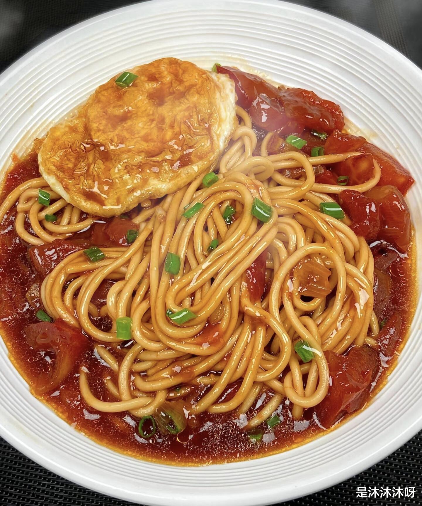 把这锅热气腾腾的番茄荷包蛋焖面盛进大碗里,面条根根分明,裹满了红亮诱人的酱汁,看着就让人食指大动。挑起一筷子送入口中,番茄的酸甜率先攻陷味蕾,紧接着是面条的软糯筋道,还有荷包蛋的焦香和蛋黄的绵密。