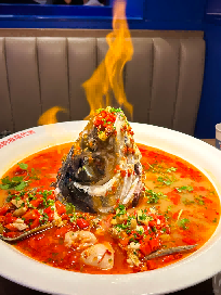 主打正宗湖南剁椒鱼头,传承湘味精髓,选用新鲜鱼头,铺满自制剁椒,上锅蒸熟,剁椒的鲜辣融入鱼肉,鱼肉滑嫩无刺,鲜辣入味,不腥不腻,搭配一碗面条,吸饱剁椒汤汁,越吃越上头,是湖南人餐桌上的经典菜肴,解锁湘味的火辣。