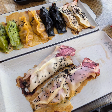 这家店是本地人私藏的美味,锅贴都是现包现煎,面皮薄而有韧性,馅料新鲜地道,每一个都皮薄馅足,煎至底部金黄酥脆,内里软嫩多汁,咬开后能看到整只鲜虾,鲜汁迸发,鲜而不腥,不油不腻。除了经典海鲜馅,还有素馅可选,满足不同人的口味,搭配店里的小米粥,清淡又爽口,是必尝的美食。