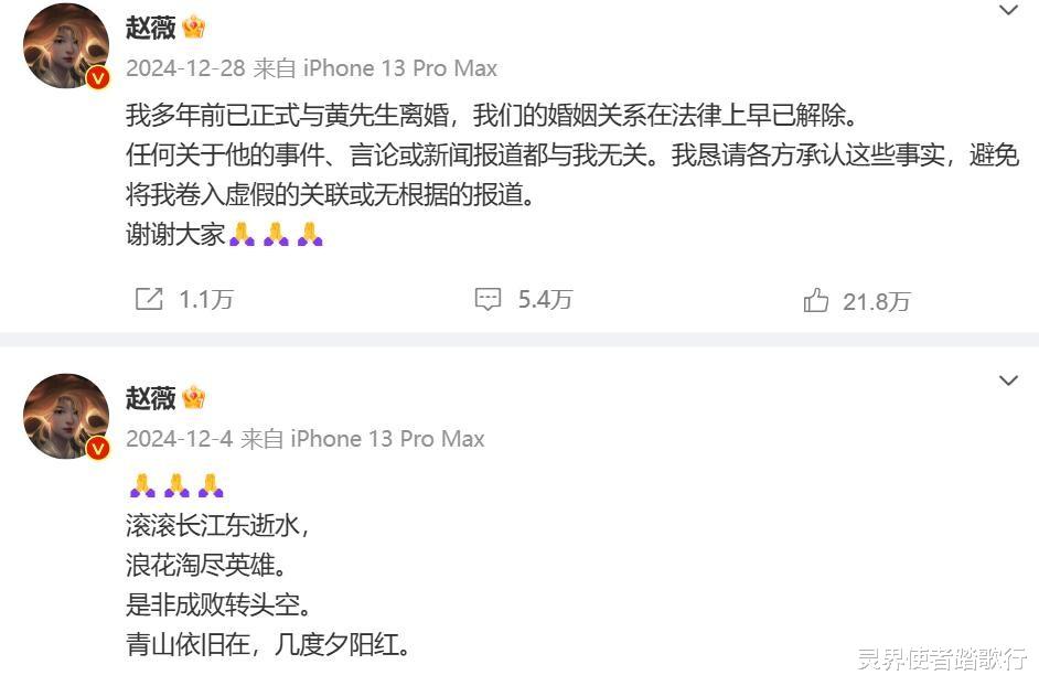 近期,赵薇的动态引发了广泛关注。12月12日,她在生日当天发布了一条英文文案,内容与佛教祈愿相关。这条文案虽简洁,却透露出她对内心平静的渴望。几天前,她还在深夜发了一条伤感的文案,回忆过去的月亮,试图与粉丝建立情感共鸣。