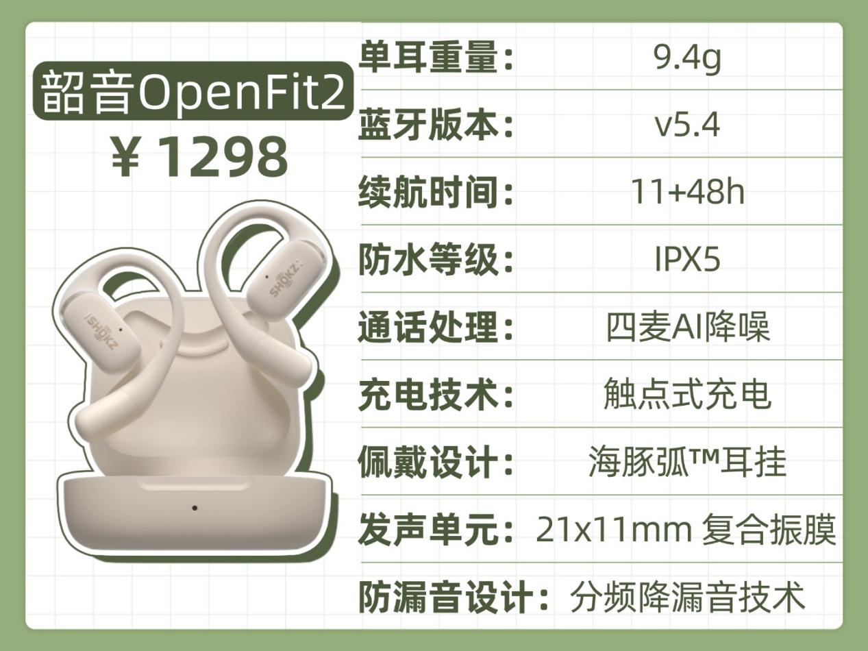 开放式耳机的发声部件是露在外面的,所以以前漏音基本是这类耳机的 “标配” 问题。但现在技术一直在进步,不少品牌都琢磨出了自己的防漏音招儿:韶音靠自己研发的定向声场技术让声音往指定方向传,开石用自研的低音聚能腔优化声学结构,虹觅则直接加了个防漏音模式。这些技术从不同角度把漏音问题压下去了,所以现在可不能说所有开放式耳机都有漏音毛病。