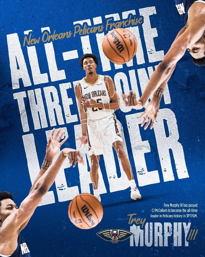 鹈鹕这边,过去3场都砍下30+的锡安表现一般,首发出场26分钟,投篮10中6,仅拿到12分5篮板2助攻的数据,正负值-24全场最低。墨菲表现不错,出场38分钟,19投10中,三分15中7,拿到27分8篮板5助攻1抢断1盖帽,正负值-18。值得一提的是,墨菲已经超越麦科勒姆,成为新的队史三分王。