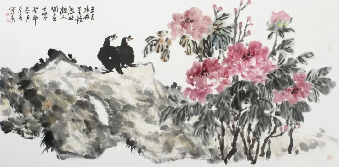 家会先生选择的传统“笔墨”造型之路是一件“非常吃功夫”的事情,这条路虽然有前人的脚步、有栏杆台阶、有绳索,但这种攀爬之路不是一蹴而就,它需要强大的支撑力、持久力和坚持不懈的努力。就像是一项看似简单的“马拉松”长跑之旅,若想在“传统赛道上”取得一份成绩是不容易的。在这里,不再详述传统“笔墨”,而是感悟家会先生写意花鸟画作品的“意象生成”。