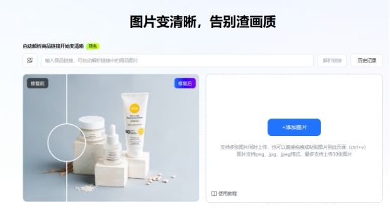 平台支持批量上传图片,一次最多可上传30张,适合需要处理大量图片的用户,例如电商运营人员或内容创作者。