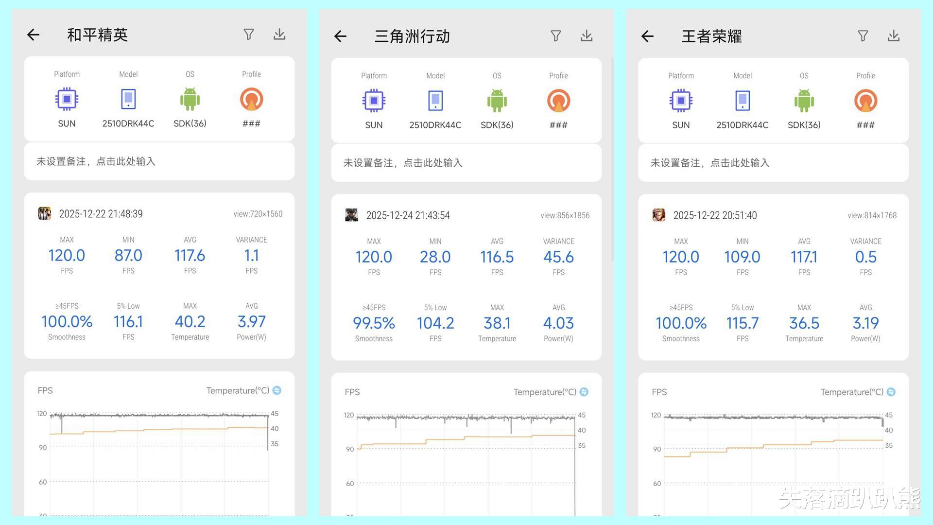 实际测试《王者荣耀》、《和平精英》、《三角洲行动》三款主流且负载较低的手机游戏,即使120帧红米K90也没办法完全跑满,平均帧率均在117左右。我就不再拿其他高负载的游戏来欺负红米K90了。