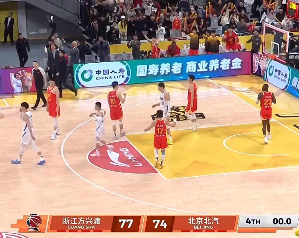 易边再战,第三节一上来,两队命中率都很低,到了中段广厦率先打破得分荒轰出一波8-0的高潮将领先优势拉开到11分。之后,两队再次打得有来有往,到了第四节后半段,北京队一度将分差缩小到2分,但最终还是错失了机会,最终广厦77-74险胜北京。