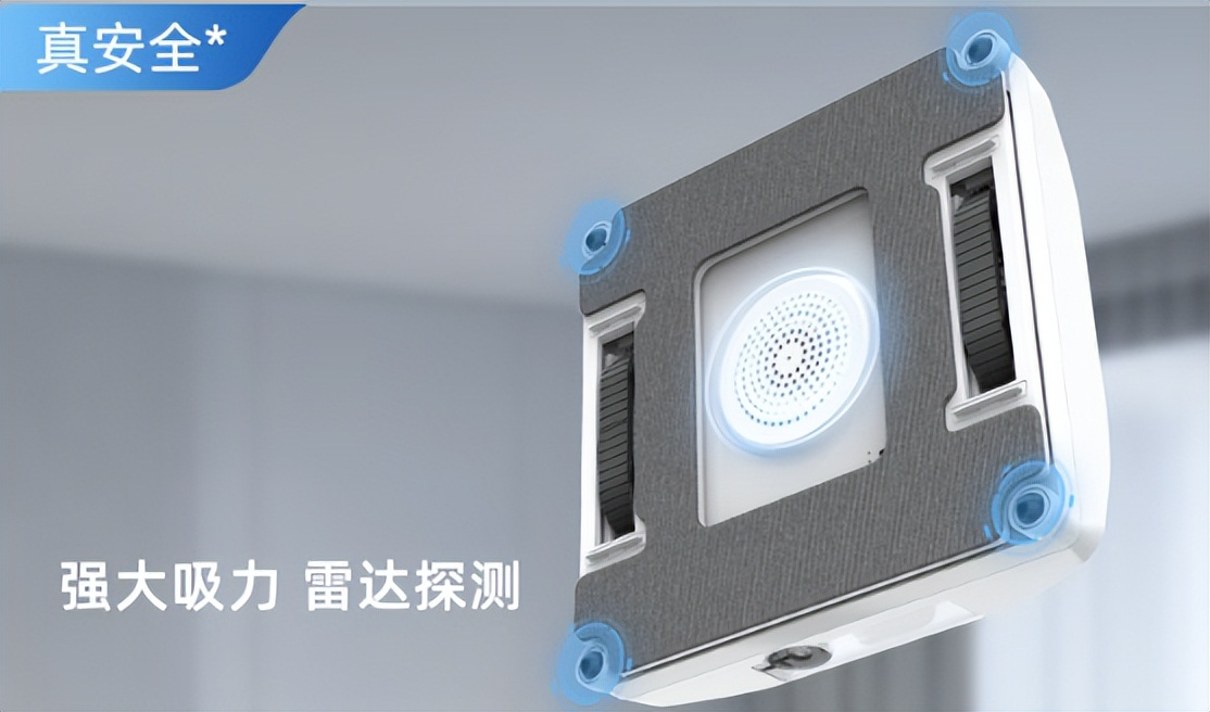 防跌落传感器机身周边的传感器能识别玻璃边缘,及时调头,防止跌落。标配安全绳,作为最后一道物理保险。搭载一个单风机真空电机,足以应对普通家庭的平板玻璃。不过对于干涸的鸟粪,胶印难以一次清除,可能需要人工预处理。