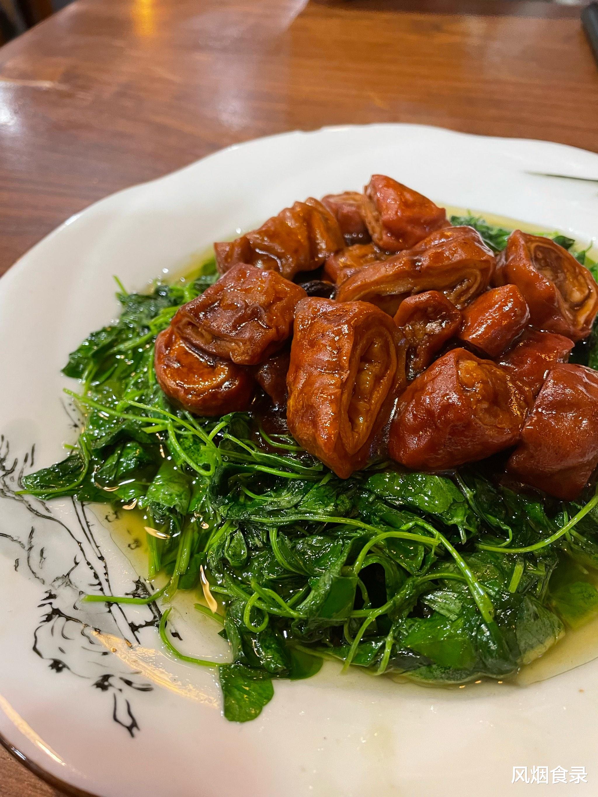 真到了民国,猪大肠便宜,饭馆为了去腥增香,才把这下水和时令蔬菜凑了对。