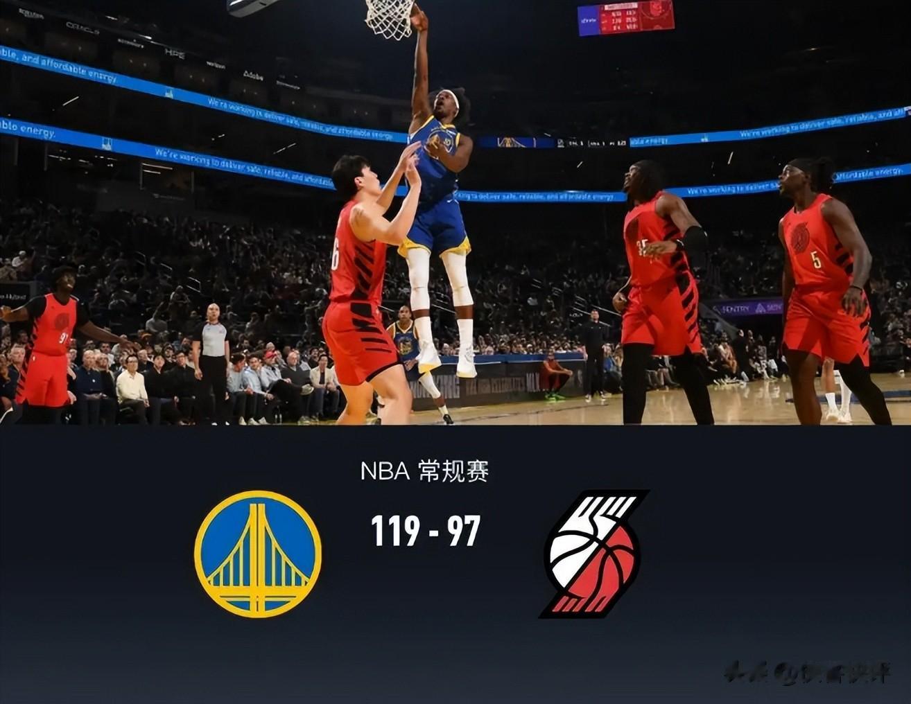 末节上来,杨瀚森被理查德顶到头后,轻伤不下火线,随后重新登场,但开拓者在阿夫迪亚伤后,难以填补得分空白,最终勇士119-97大胜对手。