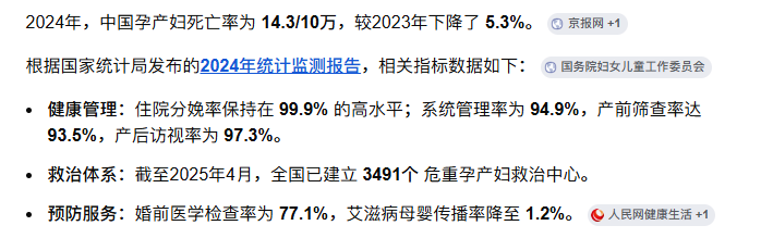 我国2024年孕产妇死亡率14.3/10万,