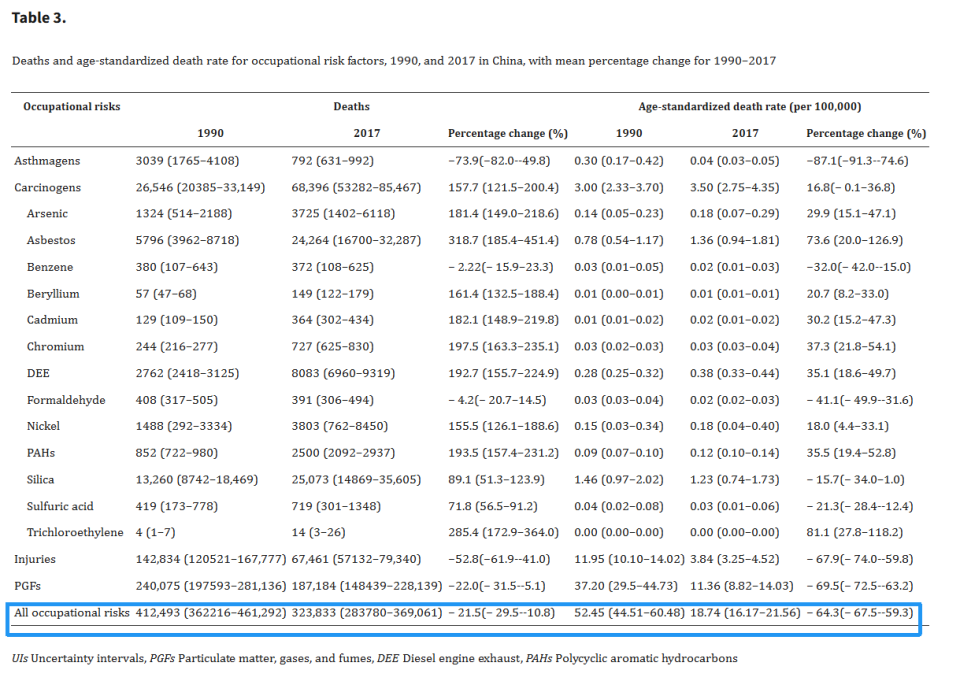 在另外一篇文章《中国18种职业风险因素造成的疾病负担:2017年全球疾病负担研究分析》[3]中指出:2017年,男性因职业风险导致的死亡人数是女性的2倍以上——maxkk26按