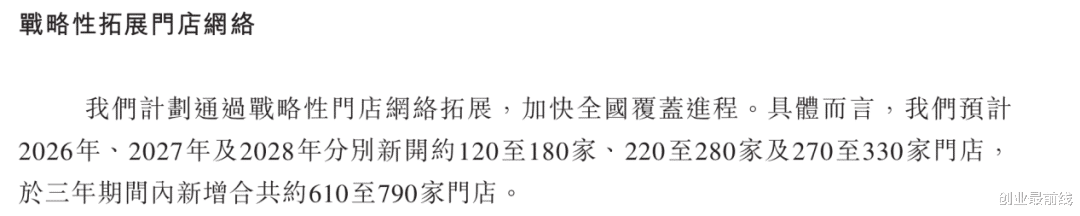 招股书也披露了具体计划,预计在2026年至2028年分别开设约120至180家、220至280家及270至330家门店,三年期间内新增合共约610至790家门店。