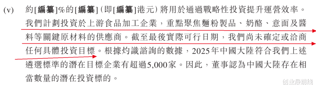 此次IPO,比格计划将部分募集资金,用于战略性投资以提升运营效率。具体而言,公司计划投资于上游食品加工企业,重点聚焦面粉制品、奶酪、意面及酱料等关键原材料的供应商。