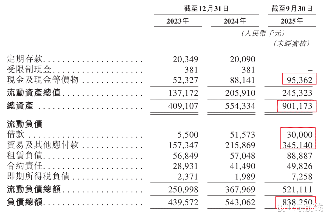 截至2025年9月30日,比格的现金及现金等价物为9536.2万元、短期借款3000万元。与此同时,公司还有3.45亿元的贸易及其他应付款,资产负债率高达93%,远超70%的行业安全警戒线。