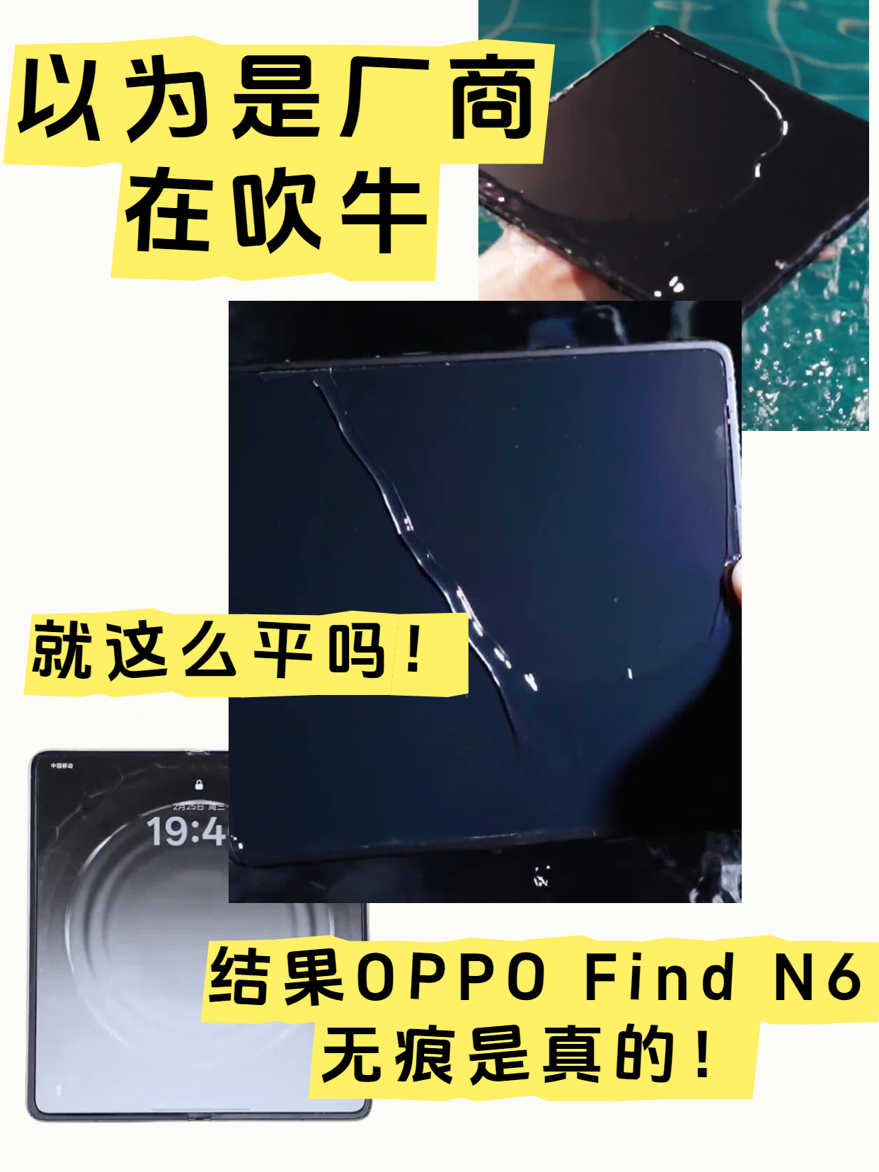 讲真,用过这么多年折叠屏手机,每次都会看到厂商在说自家产品有多平多平,结果真机不说东非大裂谷,至少折痕还是很明显的!所以这回OPPO Find N6说折痕浅的时候,我还以为夸大其词,结果看了周意保发的视频才知道来真的啊!