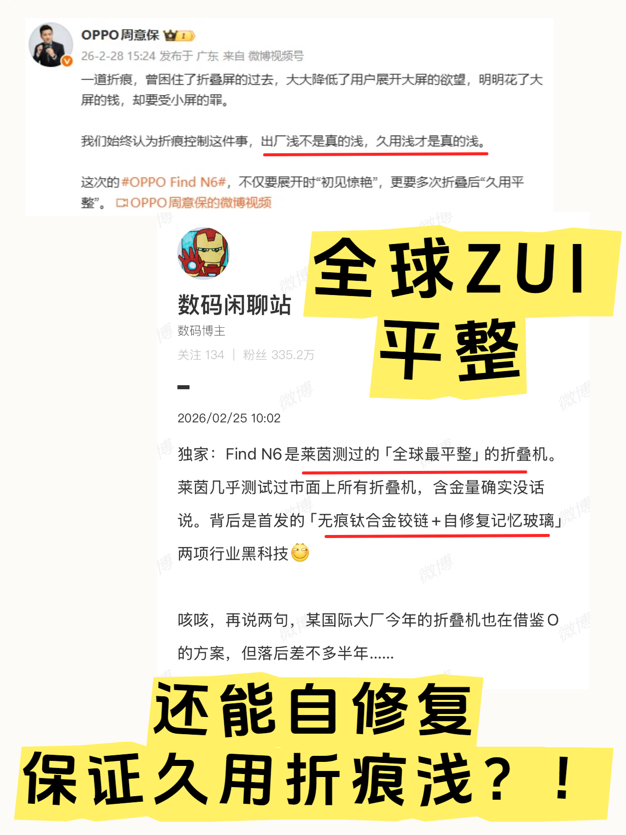 而且我看周意保和站哥说的,无痕钛合金铰链+自修复记忆玻璃,这不只是保证折叠屏到手的一刻平整,这还保证了长时间使用+多次折叠之后也不会留下明显的折痕痕迹,这下总算玩到耐久度MAX的折叠屏手机了吧~