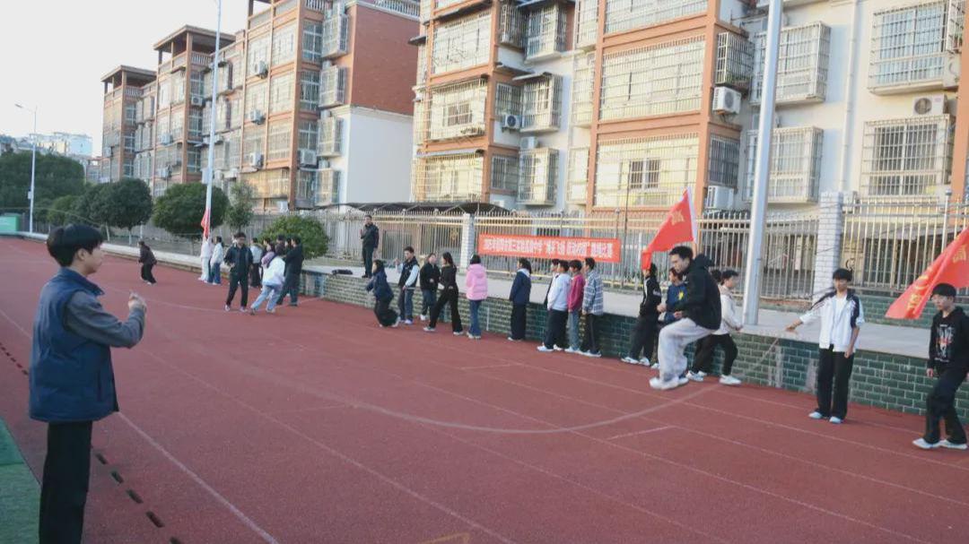 长绳翻飞绘活力,欢声笑语满校园。为深入贯彻落实中华传统体育进校园活动要求,丰富学生校园文化生活,增强学生体质,培养学生团队协作与拼搏精神,11月27日下午大课间,在信阳市第三实验高级中学的操场上,一场以“绳采飞扬,跃动校园”为主题的跳长绳比赛,在阳光下拉开了帷幕。