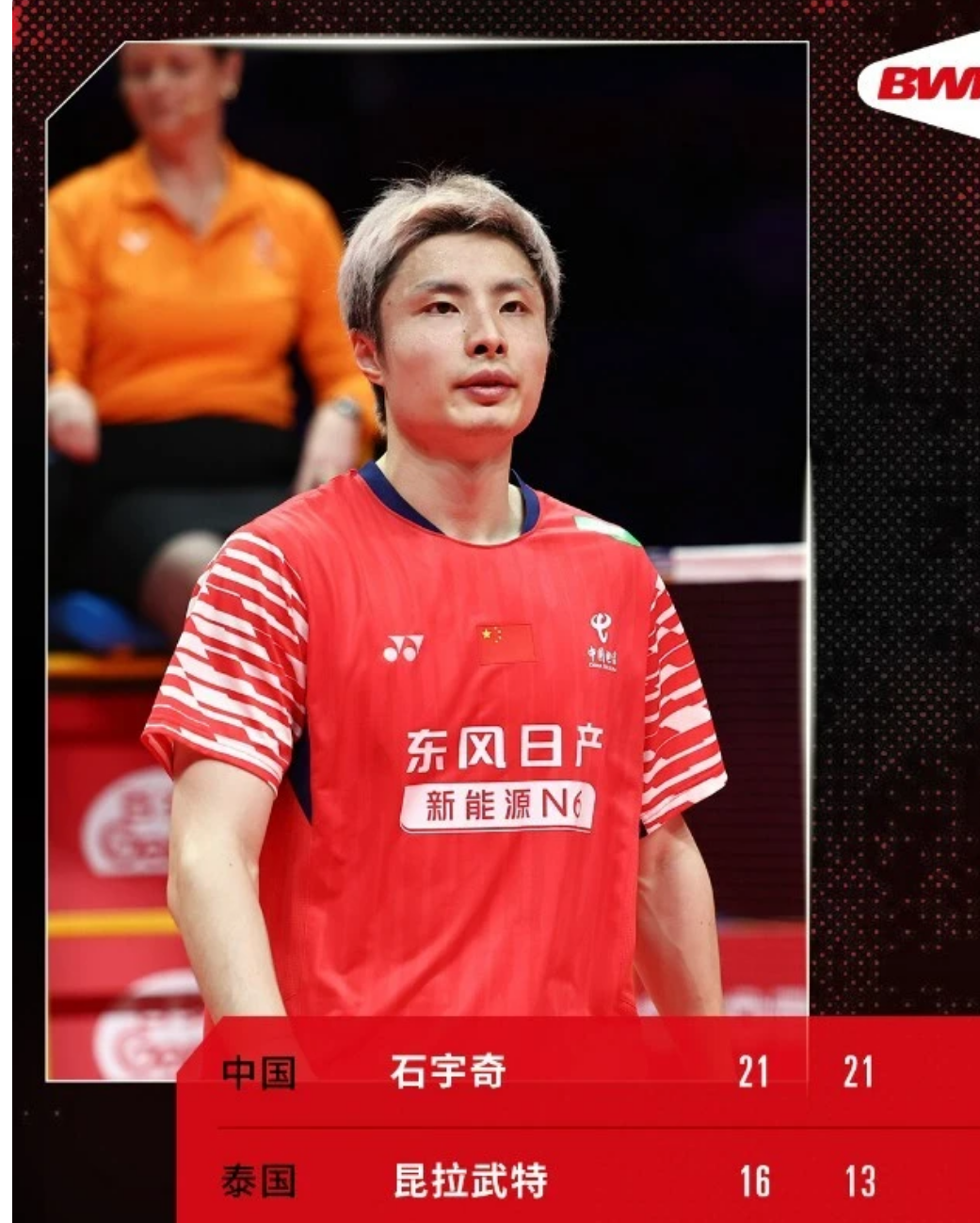 作为羽坛男单的“老对手”,两人此前已9次交锋,石宇奇以6胜3负的战绩占据明显上风。今年世锦赛决赛上,石宇奇曾在绝境中苦战三局逆转取胜,此番重逢更添宿命对决的张力。首局伊始,双方攻防拉扯激烈,比分紧咬至8-8平。关键时刻,石宇奇突然切换进攻节奏,凭借精准的落点控制和犀利的突击得分,打出一波酣畅淋漓的6-0得分高潮,一举将比分拉开至14-8。尽管昆拉武特在局末凭借细腻的网前截击奋力反扑,将分差缩小至3分,但石宇奇始终保持稳如泰山的心态,凭借关键分处理的绝对优势连得2分,以21-16稳稳拿下首局。