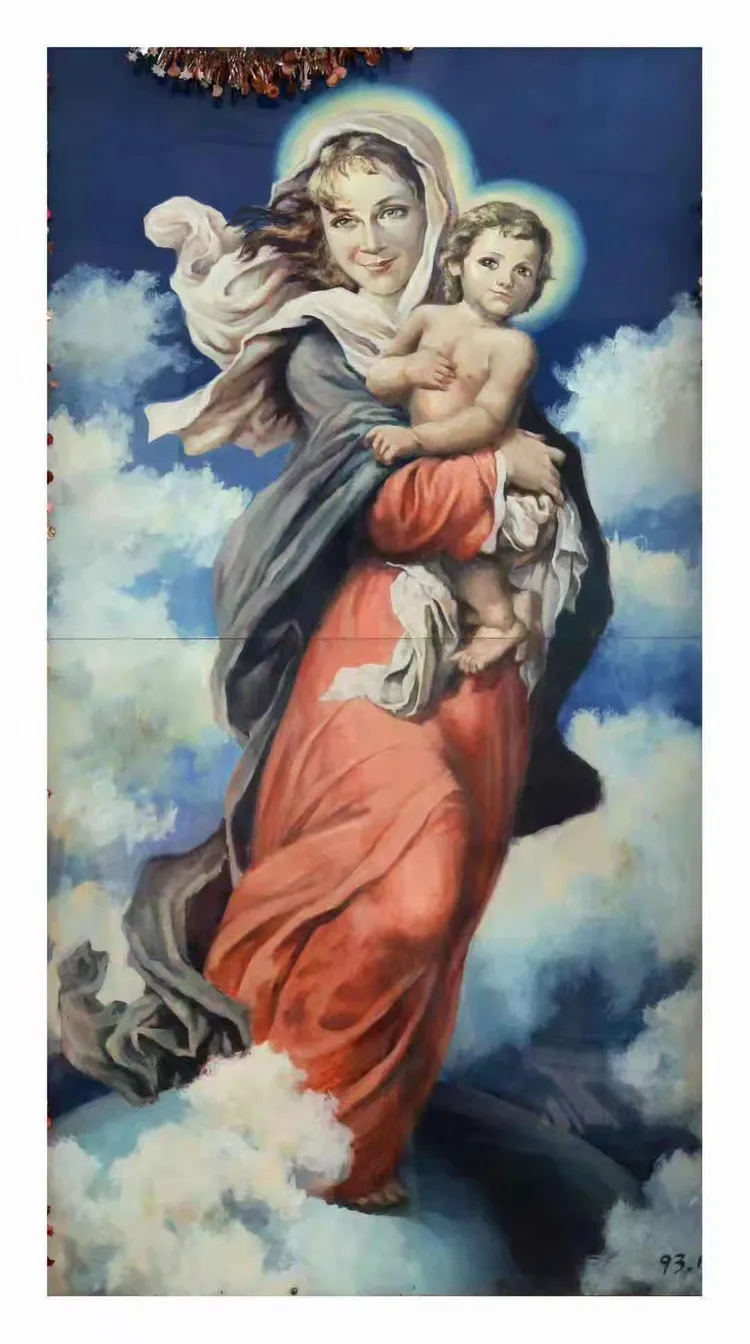 1991年起94年,受上海宗教团体委托,创作宗教题材作品四十余幅,包括教堂大型壁画《圣母升天》、水粉画《圣母与圣婴》、油画组画《十四苦路》等作品,受到国内外宗教人士一致好评。