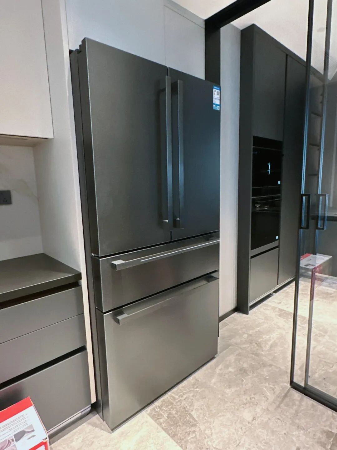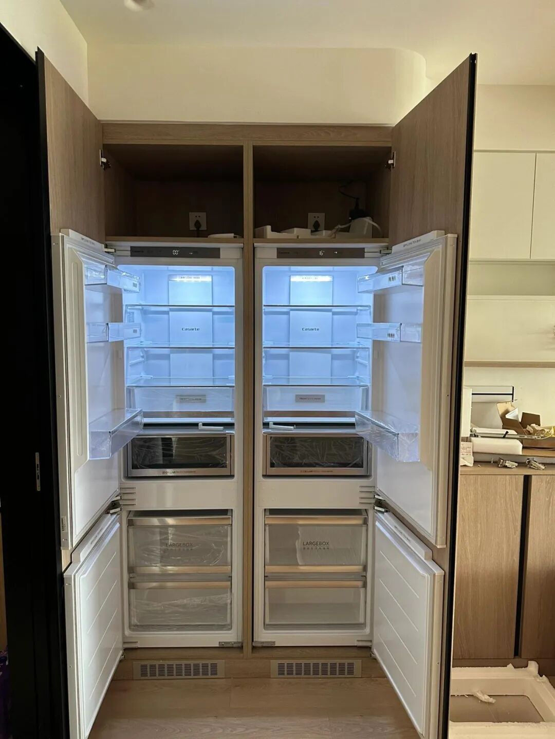 真正的嵌入式冰箱,人家散热是在前面的,所以能严丝合缝,颜值和实用性在线。