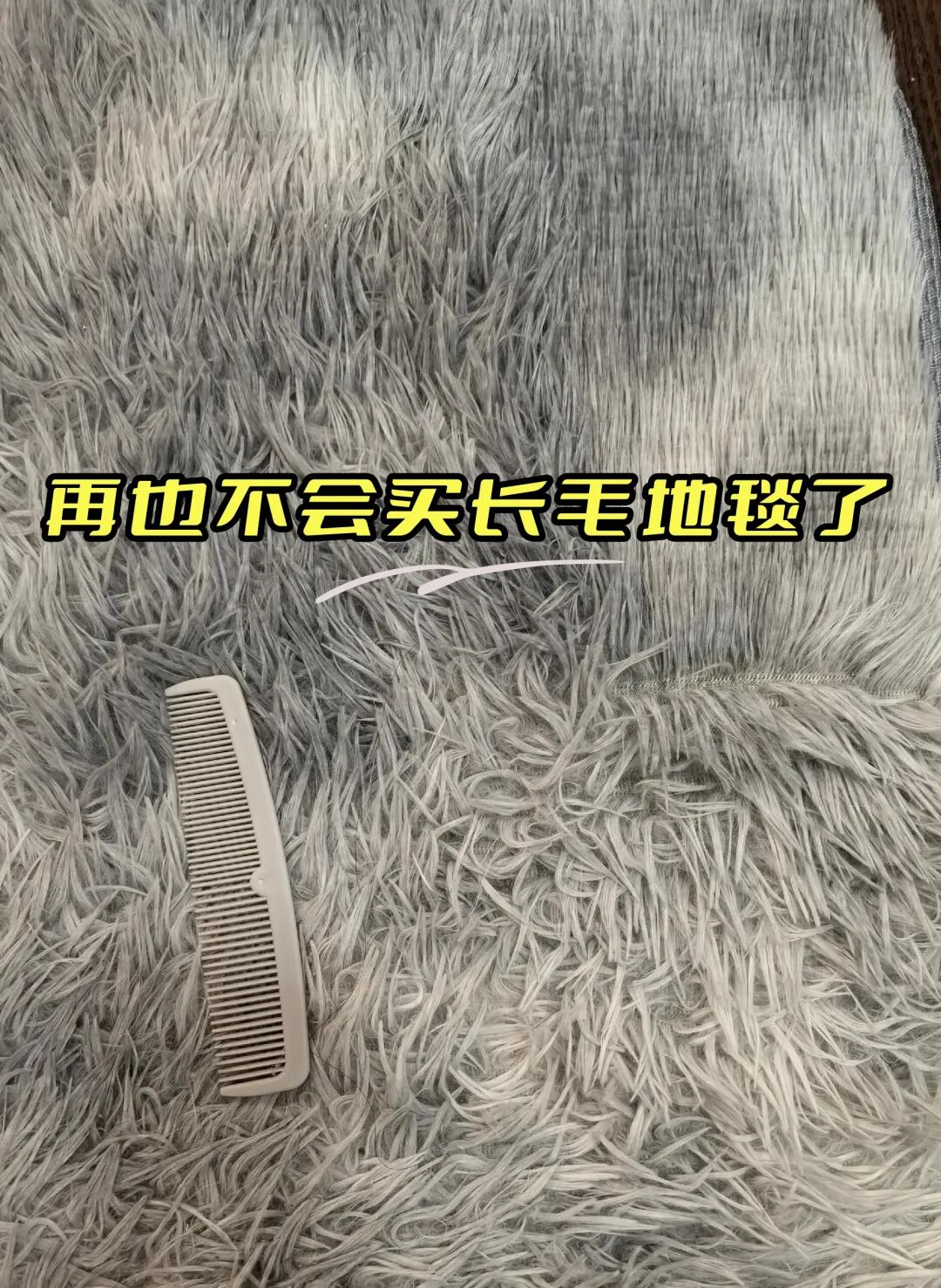 网友@ yuly 说:买的长毛地毯,洗过几次,毛就一缕缕,丑得不行,用狗毛钢梳梳完,两天又打回原形,打算丢掉了。