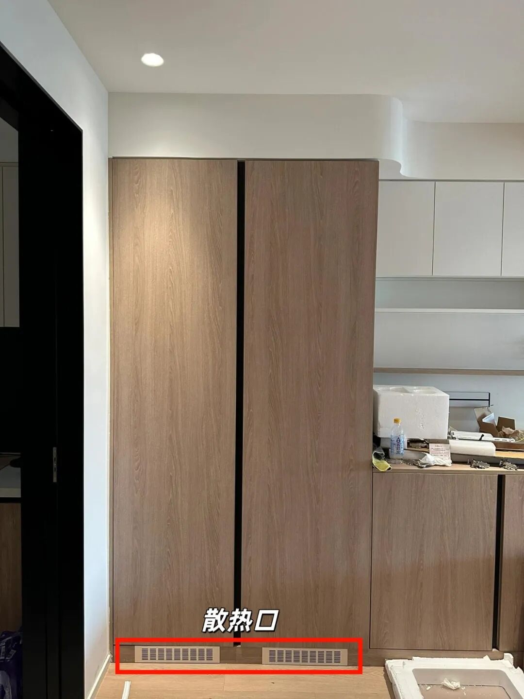没钱或者没条件买真正的嵌入式冰箱,但又想要那种严丝合缝的高级感,于是把普通冰箱硬塞进柜子里。