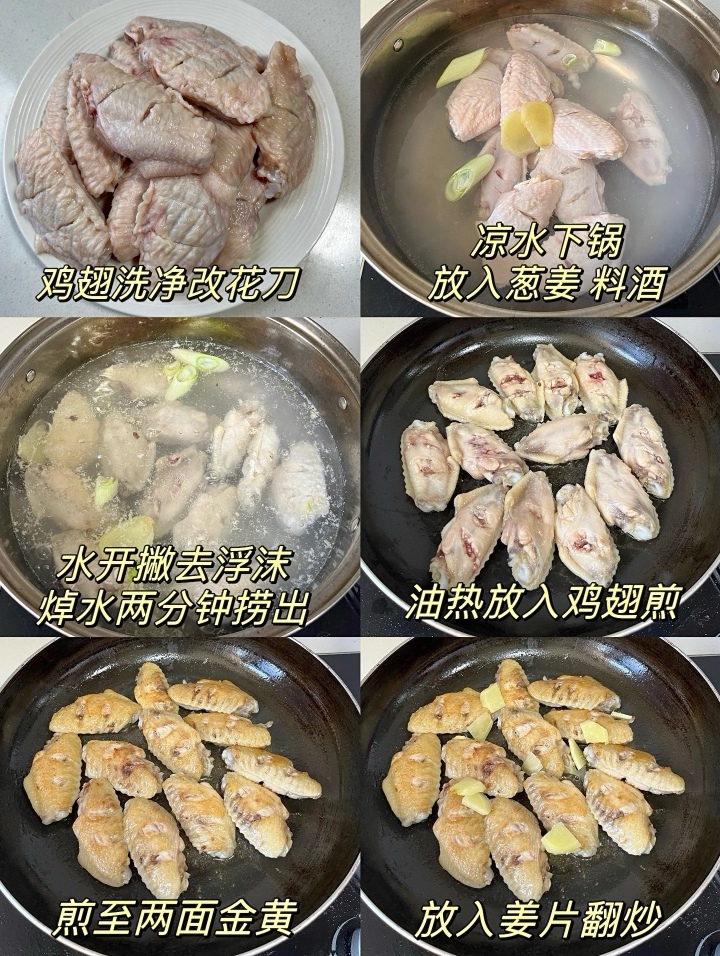 接下来就是处理鸡翅。这一步看似简单,却藏着让鸡翅更入味的小窍门。将鸡翅清洗干净后,用刀在正反两面各划上两刀,这样不仅能让腌制时的调料渗入肌理,也能让后续烹饪时的味道更加浓郁。划好后,放入碗中,加入姜片、葱段和少许料酒,抓匀腌制十分钟。这短暂的等待,是让腥味退散、鲜香进驻的最佳时机。