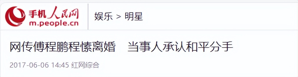 人民网 2017-06-06——网传傅程鹏程愫离婚 当事人承认和平分手