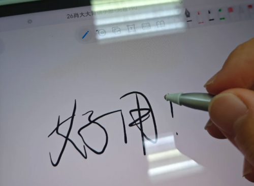 笔尖搭载了 POM材质,书写体验尚可,没有出现写字断线的情况。而且也有倾斜压感和防误触功能,线条的粗细变化很明显,还不用悬腕操作。只是写字速度过快时,会感觉跟手性稍慢一些,容易延迟。