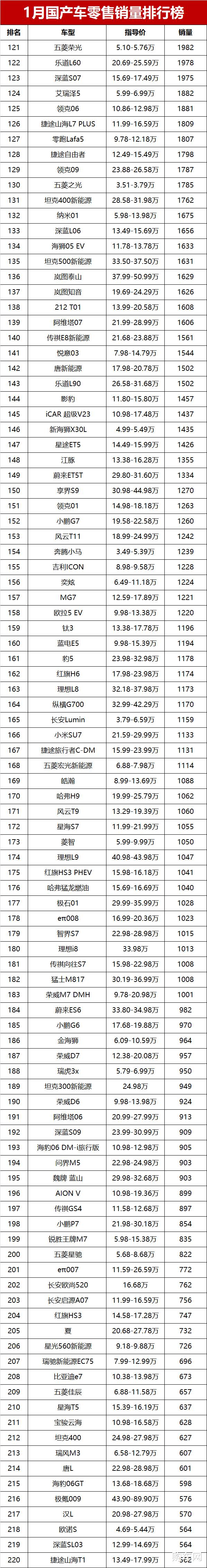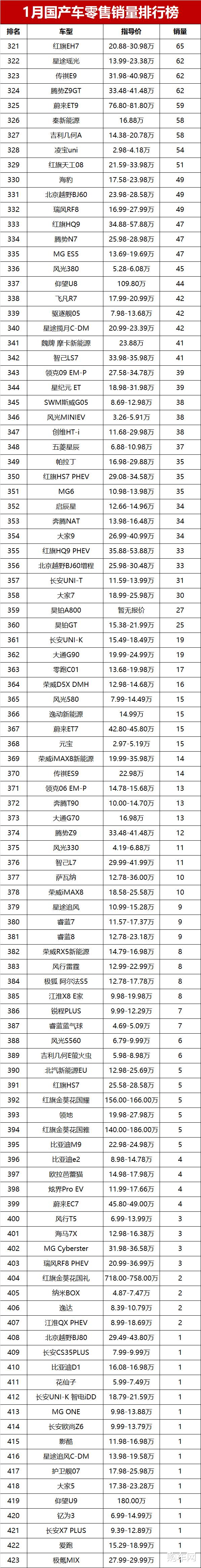 虽然1月行情偏弱,但随着新一年车企产能恢复、新车陆续上市,相信国产车市场会慢慢回暖,销量和市场份额都有望迎来反弹。