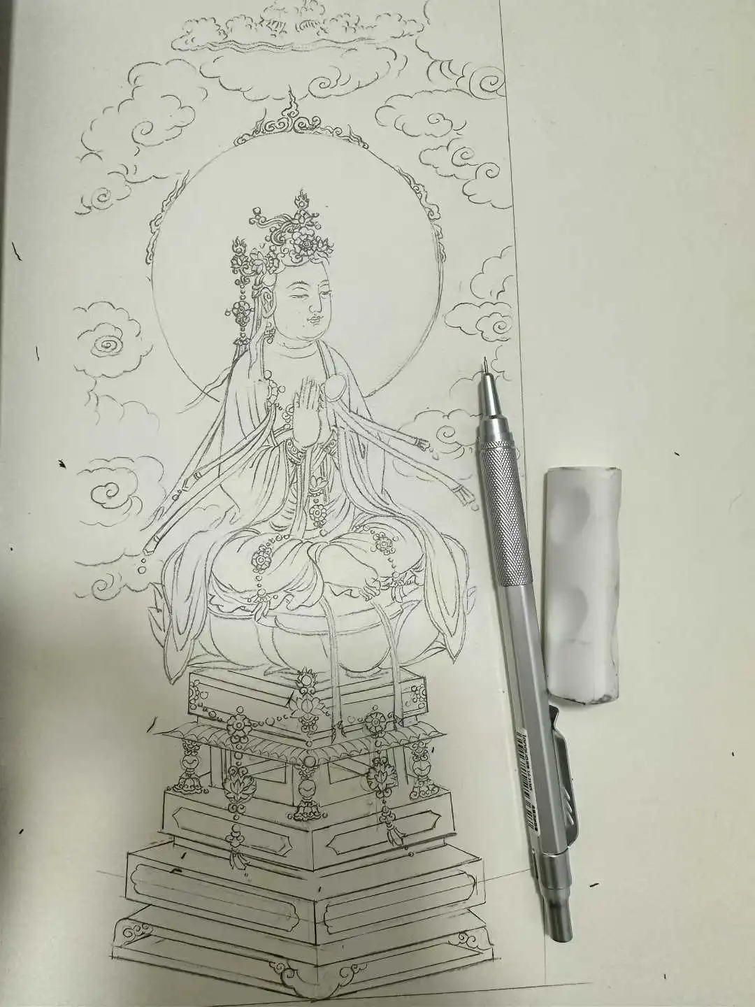 回顾这一年,用双脚和双眼见证了更多的奇迹。当我们驻足在壁画前,当我们与泥塑佛像的视线交汇,那一霎那突然有一种力量与信念注入了内心。明代董其昌在《画决》中说道:“画家六法,一曰‘气韵生动’。‘气韵’不可学,此生而知之,自然天授。然亦有学得处,读万卷书,行万里路,胸中脱去尘浊,自然丘壑内营立成鄄鄂,随手写出,皆为山水传神矣。”画佛像绘画也是同样的道理。