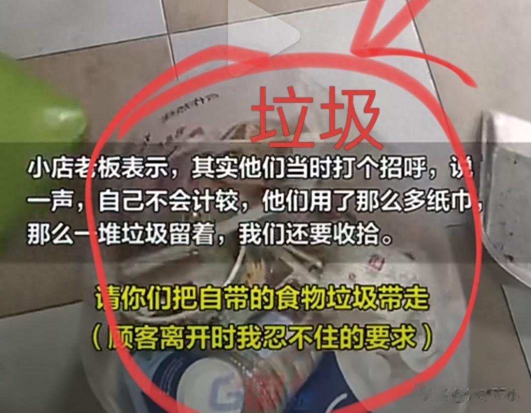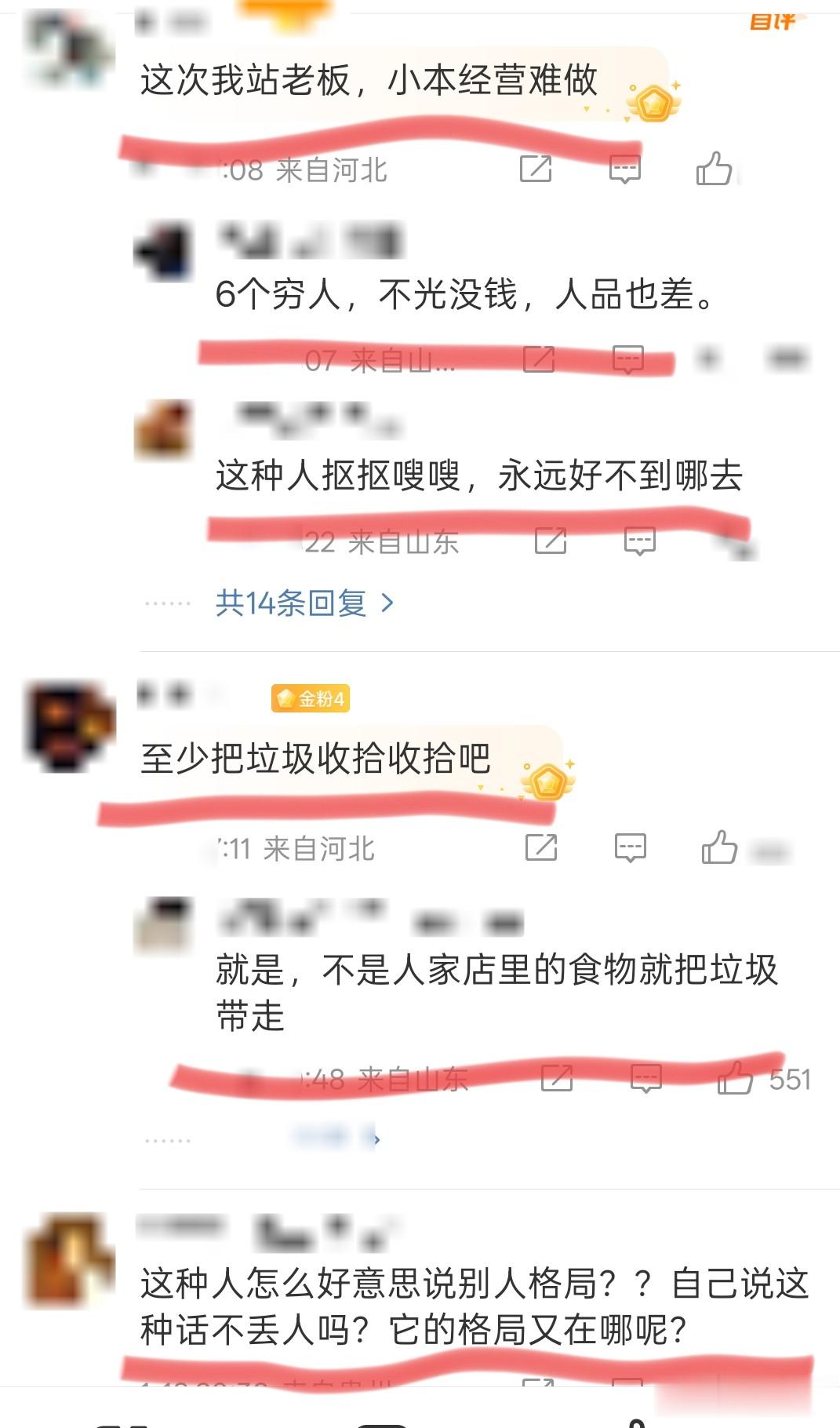 老板被怼没格局就在这6位顾客结完账要走的时候,老板心里觉得憋屈,于是就直言让顾客带走他们制造的垃圾。