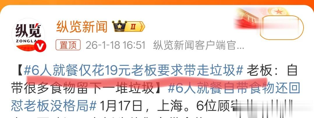 6人就餐仅花19元2026年1月18日(报道时间),根据纵览新闻消息,我们一起梳理一下“6人就餐仅花19元”的事件。