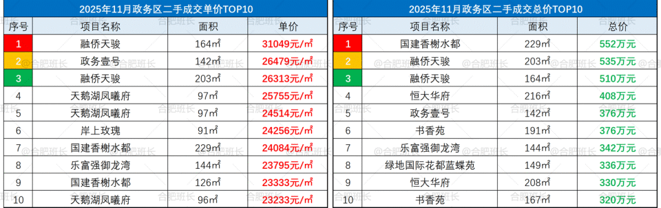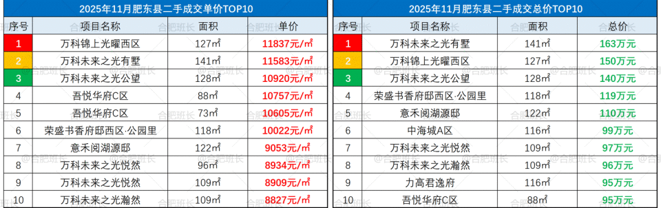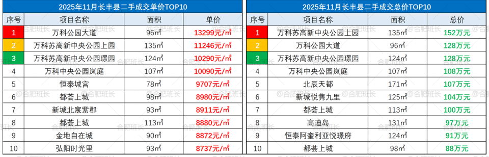 以上就是2025年11月份合肥9区3县二手房成交详细情况,数据整理不易,欢迎点赞、转发,下个月同一时间,再和大家分享二手房详细数据。
