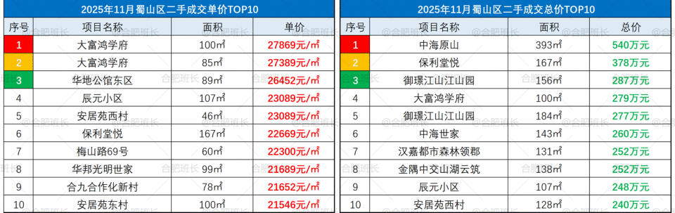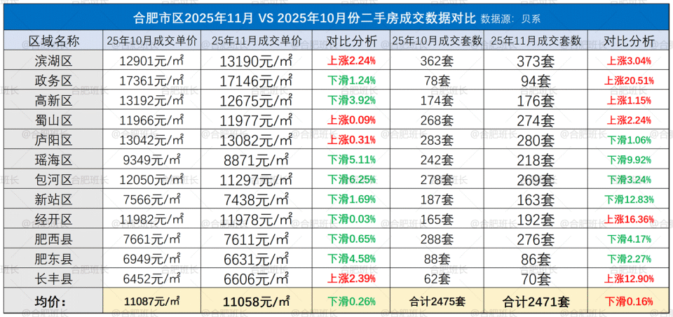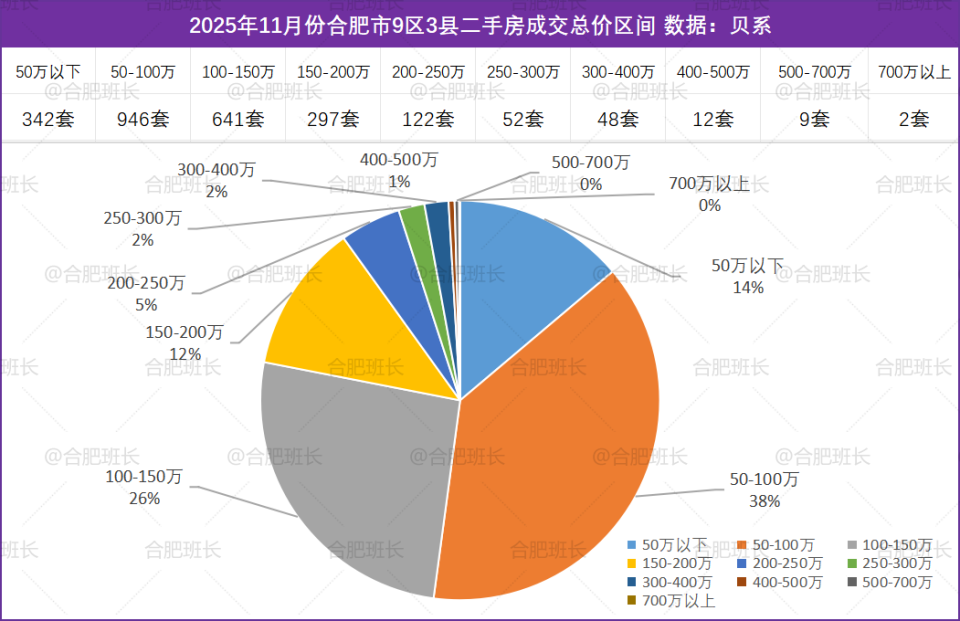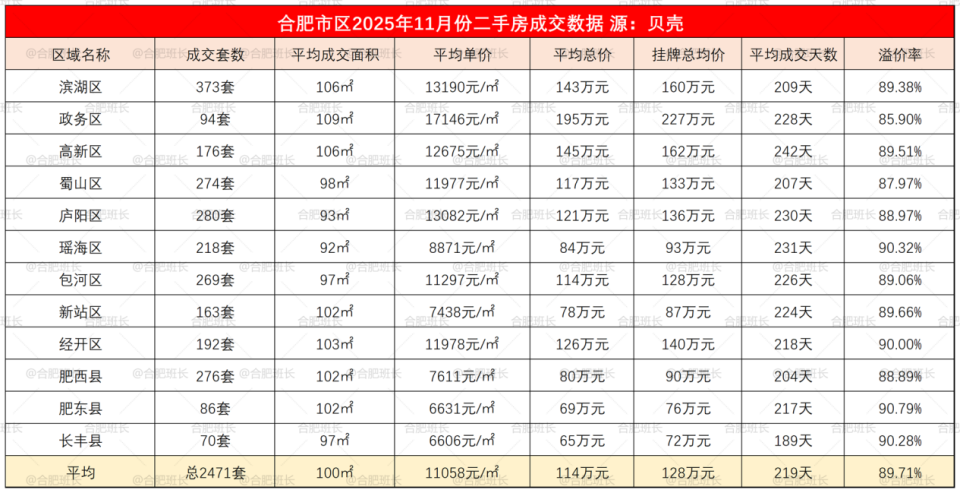 1.数据来源于贝壳,不代表2025年11月份合肥所有成交二手房数据,主要看一个趋势;