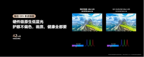 海信E8S还搭载了硬件级低蓝光技术,能有效消除42%的有害蓝光,关键是护眼还不偏色,不像有些电视护眼就发黄。家里的小朋友天天看动画片,看久了也不揉眼睛、喊眼睛酸,他看得尽兴又安心,我们做家长的,也能少操一份心。而且更贴心的是,海信E8S比传统QD-Mini LED电视节能40%以上,既好用又省电,特别适合咱们普通家庭长期用。