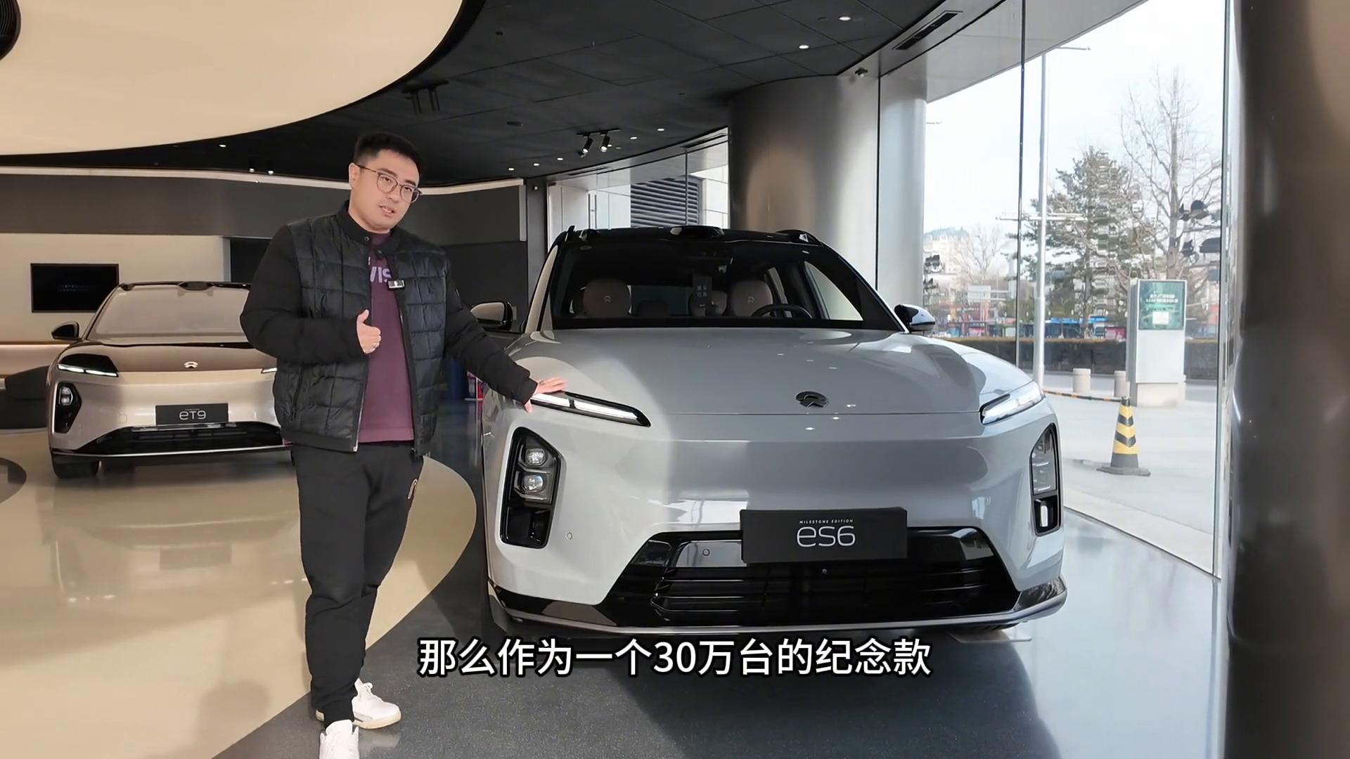 在新能源尤其是纯电的领域,蔚来是不得不提的。它也是中国品牌向自主高端进发的代表。从最开始的摸爬滚打的开拓者,现在已经到引领者了。身旁是ES6,ES6目前已经是卖过了超过30万台了,所以这台车是30万台纪念款。今天来看看这台车。