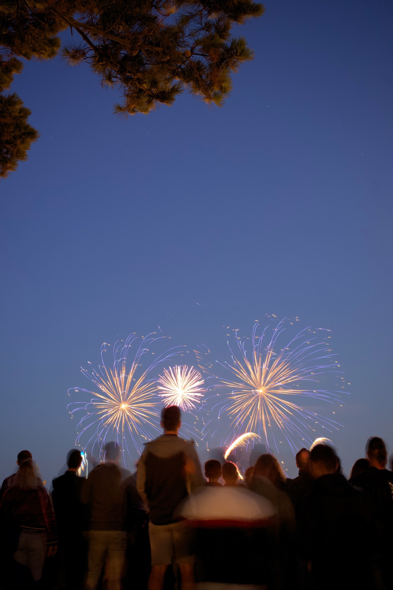 捕捉特殊瞬间:尝试拍摄烟花刚爆开时的“蒲公英”形状,或者多个烟花同时绽放的瞬间。